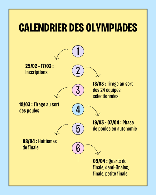 - C’est du mercredi 25 février (début des inscriptions) au jeudi 9 avril (finale à la BUlle)
