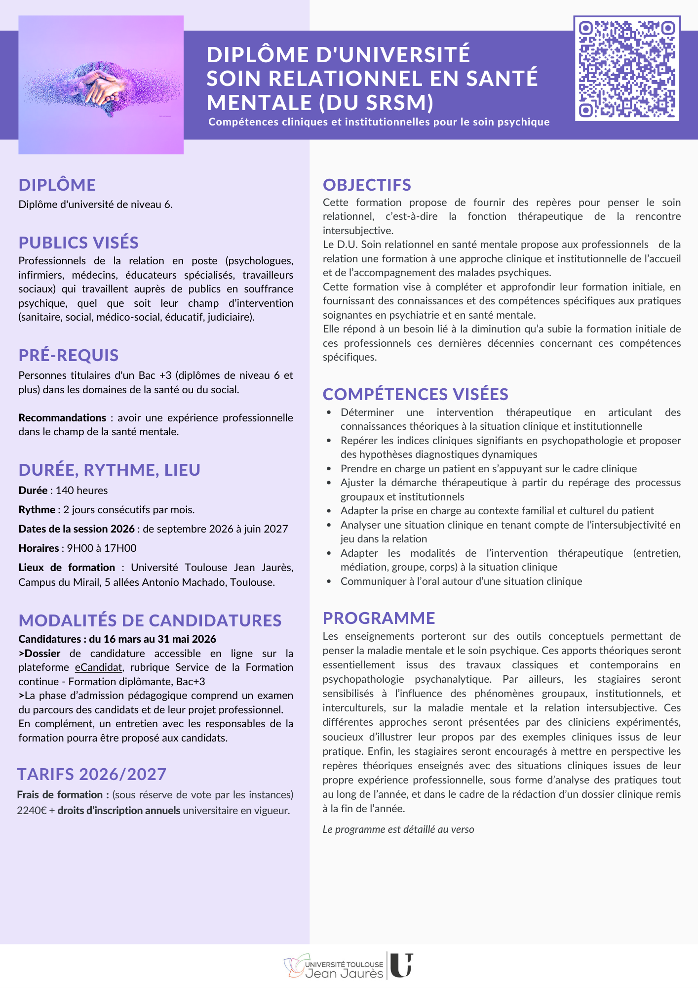 Diplôme d'Université Soin Relationnel en Santé Mentale