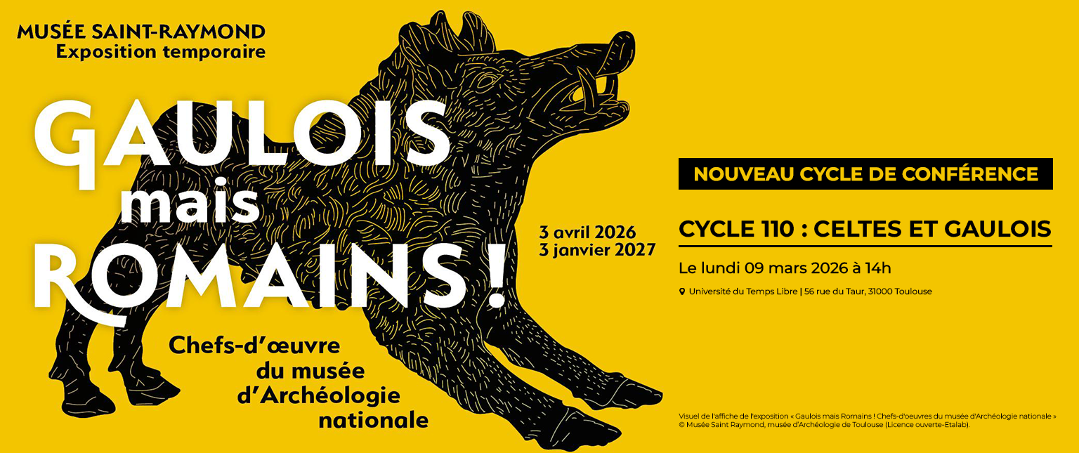 Du 3 avril 2026 au 3 janvier 2027, le Musée Saint-Raymond présente une nouvelle exposition "Gaulois mais Romains !", illustrant la rencontre entre deux cultures : gauloise et romaine. Dans cet élan culturel passionnant, l’Université du Temps Libre de Toulouse vous propose le 9 mars 2026 à 14 heures un nouveau cycle de conférence qui promet de déconstruire bien des idées reçues.