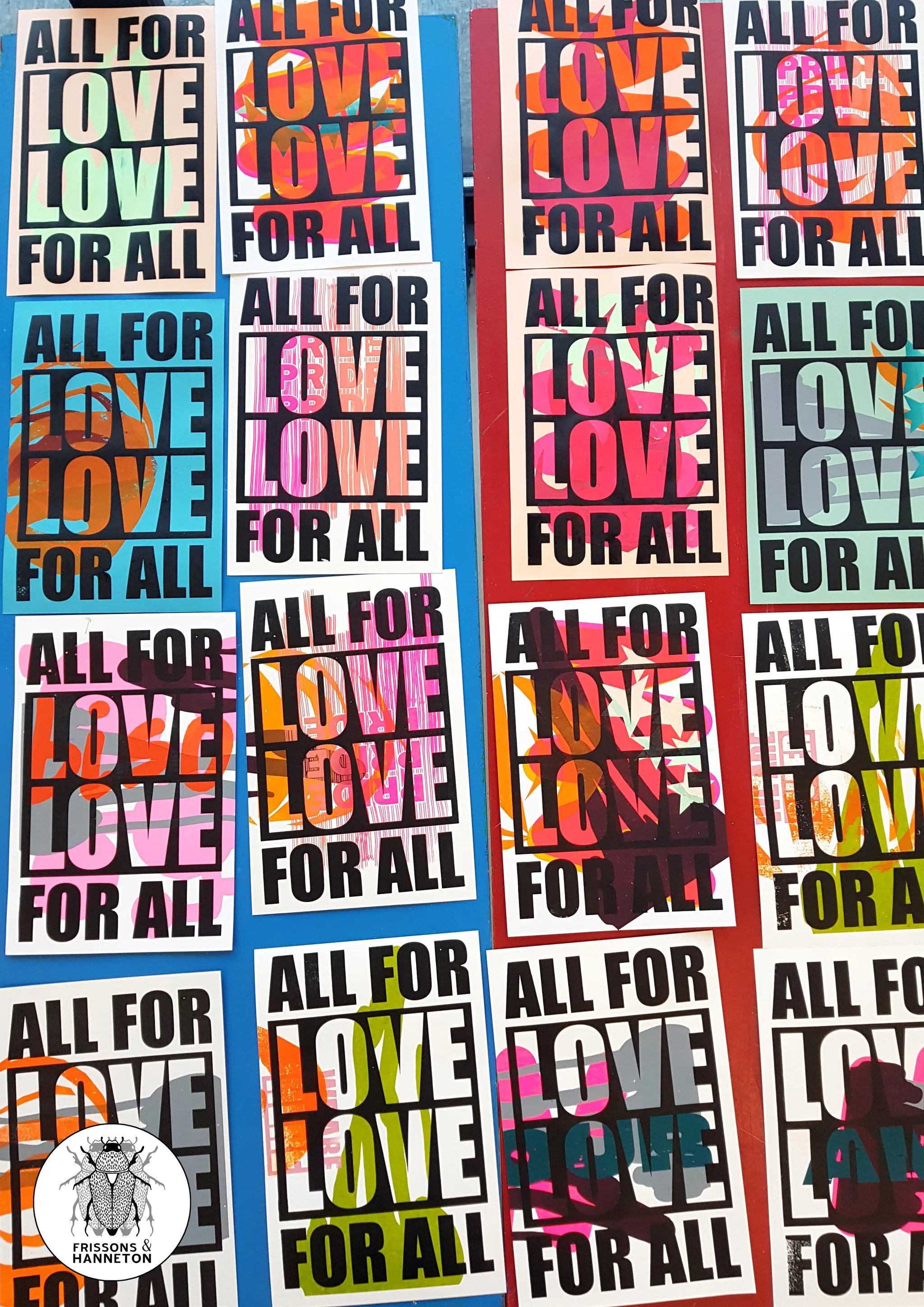 L'exposition All for print/ Print for all est le fruit de quatre ateliers de création, menés par le duo de sérigraphes Frissons & Hanneton, à l’université Toulouse Jean Jaurès. Réunissant des étudiant·es autour de la thématique commune des enjeux queer, ils ont été pensés comme des espaces d’expérimentation.